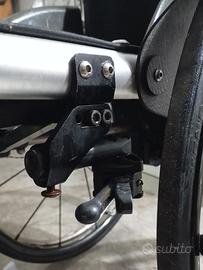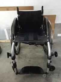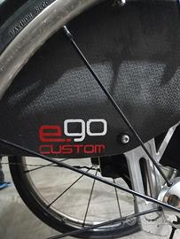 Sedia a rotelle/ carrozzina pieghevole Progeo Ego Custom in alluminio e titanio.Totalmente regolabile .Spondine in carbonio. Sistema sgancio rapido. Con ruote Spinergy super leggere. Piccola riparazione visibile nella quinta foto che non pregiudica la solidità del telaio. Testata in casa madre. Regalo 2 ruote off Road e attacchi Triride.