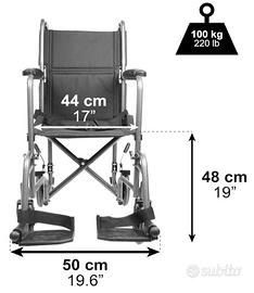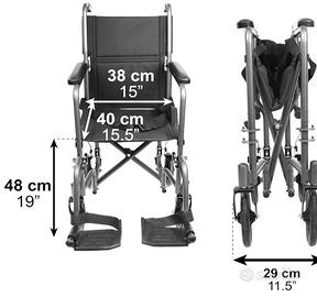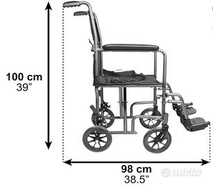 SEDIA STRETTA : Questa carrozzina è consigliata a persone non molto corpulente (larghezza della seduta di 38 cm). Grazie alle sue dimensioni ridotte (larghezza della seduta di 54 cm), questa carrozzina moltiplica l'accessibilità dell'utente, rendendola ideale per l'uso all'interno della casa in corridoi e porte strette. Inoltre, è leggera (13 kg) e facile da maneggiare. PIEGABILE: Oltre alle pedane rimovibili e regolabili in altezza che facilitano un migliore trasferimento dell'utente, questa carrozzina può essere riposta ovunque grazie alla sua rapidità e facilità di piegatura e alle sue dimensioni ridotte una volta ripiegata (29 x 74 x 59 cm). COMODA: La carrozzina è dotata di braccioli imbottiti che garantiscono un maggiore comfort all'utente e di una piccola tasca posteriore ideale per riporre gli oggetti personali. Inoltre, la leva di sollevamento dei gradini sulle ruote posteriori permette alla carrozzina di superare qualsiasi ostacolo in tutta sicurezza. SICURO: Il sistema di bloccaggio dei freni che si attiva premendo la leva posteriore immobilizza completamente la carrozzina. Inoltre, la sua struttura è realizzata in acciaio che la rende più resistente ed è dotata di una cintura di sicurezza che offre un maggiore sostegno all'utente. Peso massimo dell'utente: 100 kg. FUNZIONALE: Aiuta a trasportare persone con problemi di mobilità, anziani o persone non autosufficienti che devono utilizzare una sedia a rotelle in modo permanente o temporaneo. È progettato per essere trasportato da una terza persona con forza sufficiente a spingere la sedia a rotelle in modo sicuro.