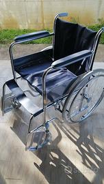 carrozzina pieghevole per anziani a disabili nuova fiammante mai usata. Si tratta di una sedia a rotelle del tipo standard a singola crociera con pedane reclinabili e braccioli fissi. Peso sopportato fino a 120 kg.
