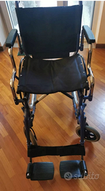 Sedia a rotelle pieghevole come nuova. Leggera e resistente. Disponibili accessori e poggia gambe regolabili.