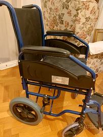 Sedia a rotelle usata pochissimo, gli appoggia piedi davanti sono fissati con fascette perché non stanno fermi e pertanto si sono un po rovinati