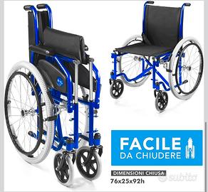 Sedia a rotelle pieghevole blu leggera