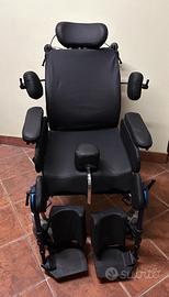 Sedia a rotelle polifunzionale Moretti cp900-45 Seduta 45 cm -Telaio in acciaio verniciato, seduta e schienale anatomici in poliuretano stampato e rivestiti in nylon nero lavabile. -Poggiatesta anatomico in poliuretano stampato rivestito in nylon nero lavabile, regolabile in altezza, profondità ed angolazione. -Braccioli e fianchetti imbottiti, estraibili, regolabili in altezza e larghezza. -Pedane estraibili, regolabili in larghezza, profondità ed inclinazione con poggia gambe regolabili in altezza dotate di cuscinetti proteggi ginocchio. -Poggiapiedi regolabili in lunghezza. -Cuscinetti contenitivi del busto, imbottiti, estraibili, regolabili in altezza, larghezza e angolazione. -Divaricatore anatomico imbottito e regolabile. -Ruote anteriori in PU Ø 20 cm con forcella in alluminio, regolabili in più posizioni. -Ruotine antiribaltamento in dotazione. -Maniglione di spinta imbottito, regolabile in altezza completo di comandi operatore. Prezzo nuova ?800 Vendo per inutilizzo 230? , prezzo trattabile