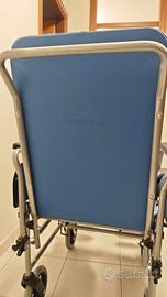 Sedia a rotelle comoda in acciaio verniciato con schienale reclinabile linea Komoda. Mai utilizzata.