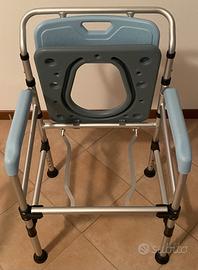 Sedia comoda per anziani. L'altezza della sedia può essere regolata in 6 livelli in base alle vostre esigenze, lo schienale è regolabile in 3 livelli e la comoda posizione dello schienale è adattata alla propria altezza. Materiale in lega di alluminio di alta qualità, doppia asta di espansione, stabile e sicuro, grande ventosa, buona resistenza allo scivolamento, questa toilette ha una portata massima di 200 kg, durevole.