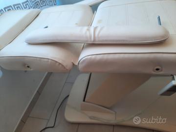Per inutilizzo vendo sedia estetica a 3 motori, può diventare lettino, con braccioli estraibili, porta rotolo. Qualche difetto di usura che si vede in foto.