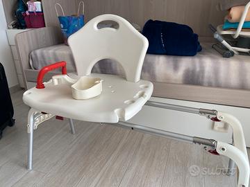 Sedia scorrevole per disabili da usare in Doccia. Bracciolo interscambiabile. Mai usato, acquisto non idoneo per la persona che l'ha acquistata e reso non accettato dalla ditta. Resistente porta fino a 130 kg.