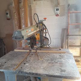 Sega circolare radiale, regolabile per taglio obliqui o in longitudinale per pannelli larghi, alimentazione 380Volt, con disco di ricambio. Contattare solo interessati.