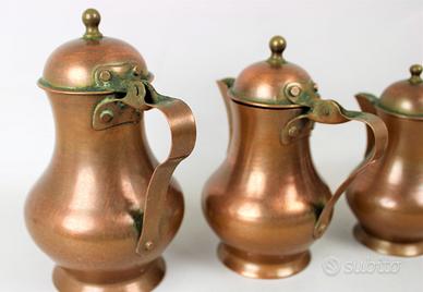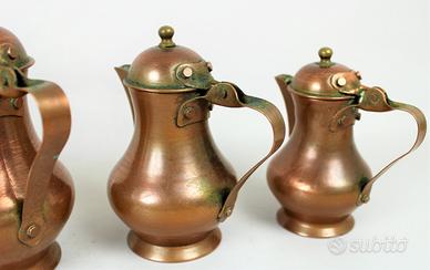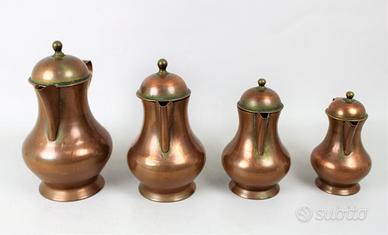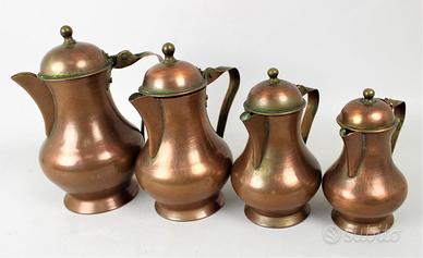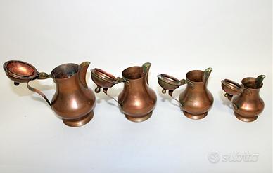 Originale e simpatica serie di 4 bricchetti da collezione interamente in rame battuti a mano con coperchio basculante.