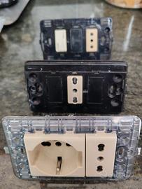 Set Bticino Magic color bronzo per impianto elettrico da appartamento comprensivo di placchette, frutti e sostegni in buono stato. Per elenco completo vedi foto.