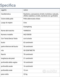 Vendo sex doll + testa in TPE , struttura in metallo, altezza cm 158.(No gonfiabile) Nuova (ancora imballata).
