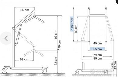 VENDO NUOVO ANCORA IMBALLATO MAI USATO. Descrizione prodotto Sollevamalati in acciaio verniciato Idraulico Pompa oleodinamica Muevo - Modello ingombro ridotto - Apertura gambe a leva - Portata max 150 kg Struttura smontabile rettangolare in acciaio verniciato. Ruote piroettanti da 10 Cm di cui due con freno. Elevazione con pompa oleodinamica. La base regolabile in larghezza garantisce stabilità e facile accesso in ambienti con spazi ristretti. Portata massima 150 kg. Manopola di regolazione velocità di discesa. Apertura gambe a leva. o Struttura in acciao verniciato o 4 ruote piroettanti 10 cm di cui 2 con freno o Meccanismo di apertura delle gambe tramite leva con blocco di sicurezza o Manopola regolazione velocità discesa o Maniglie confortevoli per l'operatore sanitario o Ganci progettati appositamente per alloggiare l'imbracatura in tutta sicurezza. SPESE DI SPEDIZIONE A CARICO DELL'ACQUIRENTE DA CONCORDARE O RITIRO IN ZONA GRATUITO.