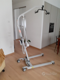 Sollevatore mobile con batteria e telecomando usato completo di imbragatutra standard. 4 ruote con freni. Portata kg 150. Tenuto in ottime condizioni.