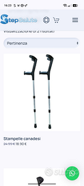 Nuove: coppia di stampelle canadesi, altezza regolabile, portata massima kg 130.