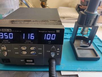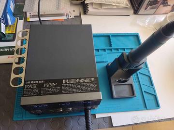 Stazione aria calda per smd usata pochissimo come nuova. Caratteristiche La velocità attuale del volume d'aria è regolata di 1-200. Intervallo di temperatura: 100°C -500°C (212° F-932° F) Flusso d'aria: 120 l/min (max) 1.Con quattro canali di lavoro: CH1, CH2, CH3, CH4, è possibile impostare e memorizzare il volume dell'aria e la temperatura di ciascun canale. 2, con una varietà di funzioni di protezione e una perfetta funzione dei pulsanti. 3.Comodo funzionamento in tempo reale, controllato da un interruttore magnetico, la maniglia è posizionata sulla mano e il telaio della maniglia entra immediatamente in uno stato dormiente. 4.Con la funzione di sospensione automatica, le impostazioni dei parametri possono essere regolate nello stato di sospensione. 5.Sensore a circuito chiuso, controllo della temperatura del trigger con passaggio zero del microcomputer, alta potenza, riscaldamento rapido, regolazione della temperatura comoda, precisa e stabile, non influenzata dal volume dell'aria. 6.Ventola in vort senza spazzole, volume d'aria regolabile, ampia gamma, adatta a una varietà di scopi. 7.Il sistema è dotato di una funzione di raffreddamento automatico ad ampio volume d'aria per prolungare la durata dell'elemento riscaldante e proteggere l'impugnatura dell'aria calda. 8.In tempo reale° C/° Funzione di visualizzazione della temperatura F. 9.Con funzione di autocalibrazione della temperatura. Utilizzo: 1.Adatto per la dissaldatura di vari componenti, come: SOIC, CHIP, QFP, PLCC, BGA, ecc. 2.Adatto per termoretrazione, asciugatura, rimozione della vernice, debossing, scongelamento, preriscaldamento, disinfezione, saldatura con colla, ecc. 3.Volume d'aria regolabile, adatto per aree che richiedono volume d'aria ridotto e riscaldamento ad ampio volume d'aria. Contenuto della scatola: 1 x 8620DX PRO (AC 220 V) 1300 W max 1 supporto per pistola ad aria calda 6 ugelli dritti 1 nucleo riscaldante in ceramica 1 filo di terra. Non si effettuano spedizioni.