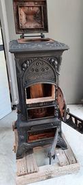E' stata ricondizionata da pochi anni e sono state riparate con cura e grande difficoltà di reperimento parti mancanti e rare permettendone il funzionamento a legna o a carbone.