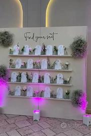 Vendo raffinato tableau de mariage realizzato artigianalmente in legno multistrato marino verniciato. Caratteristiche principali: o Dimensioni generose: 220x220 cm ideale per accogliere comodamente tutti i nomi degli invitati, anche per matrimoni numerosi. o Design smontabile: struttura completamente smontabile per un facile trasporto e rimontaggio, senza bisogno di attrezzi particolari. o Materiale resistente: multistrato marino verniciato, pensato per durare nel tempo e per resistere anche in ambienti esterni. o Condizioni eccellenti: utilizzato una sola volta, pari al nuovo. Perfetto per: o Wedding planner o Future spose e sposi o Location per eventi e matrimoni.