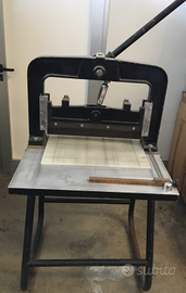 Antica taglia tessuti manuale. Lana zigrinata misura 50 cm.. Pannello da supporto. Funzionante. Adatta anche solo per esposizione o arredamento.