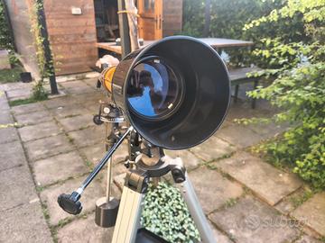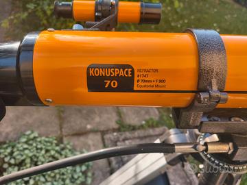 Telescopio rifrattore Konus 70 x 900 mm - Completo e con manuale* Vendo telescopio rifrattore Konus 70/900 usato ma in ottime condizioni, perfetto per iniziare ad osservare Luna, pianeti e cielo profondo base. *Caratteristiche principali:* - *Apertura*: 70 mm - *Lunghezza focale*: 900 mm, f/12.8 - *Montatura*: Altazimutale con movimenti micrometrici lenti su entrambi gli assi - *Treppiede*: In alluminio regolabile in altezza, stabile e leggero *Dotazione completa, tutto incluso:* 1. Tubo ottico 70 x 900 mm con paraluce 2. Montatura altazimutale con manopole micrometriche 3. Treppiede in alluminio 4. Cercatore 5x24 5. Due diagonali a specchio 90° da 31.8 mm 6. 4 oculari originali: 2 da 20 mm una da 8 mm e una da 6 mm 7. Lente di Barlow 2x per raddoppiare gli ingrandimenti 8. *Manuale di istruzioni originale* in italiano 9. Tappo con foro diaframmato 10. Filtro lunare Ideale per crateri lunari, anelli di Saturno, fasi di Venere, Giove con le sue lune, ammassi stellari e nebulose più luminose. *Condizioni*: Usato ma tenuto con cura. Ottiche pulite. Meccanica fluida, treppiede in ottime condizioni. Qualche segno d'uso solo sul treppiede. Funziona perfettamente. Perfetto come primo telescopio per adulti e ragazzi. Pronto all'uso appena montato. *Ritiro a mano zona Cervarese santa Croce PD. Per foto aggiuntive o domande scrivimi pure.