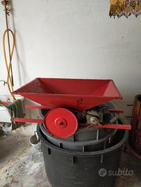 Vendo torchio a cricchetto (diametro 60) con movimento orario e antiorario completo di pigiatrice elettrica e 3 tini in PVC.