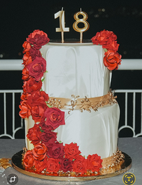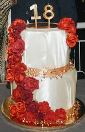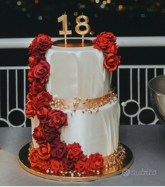 Vendo torta scenografica in raso e rose in velluto Raffinata ed elegante, personalizzabile per qualsiasi evento: Compleanni Lauree Perfetta per decorare con stile ogni occasione speciale!