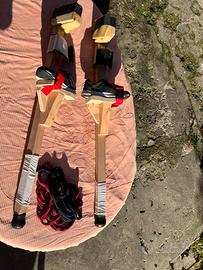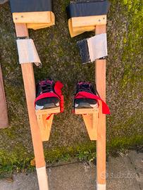 Vendo trampoli da 70 fatti da un artigiano professionista, sono un ex trampoliere. Questi trampoli hanno fatto meno di una decina di uscite su strada praticamente nuovi con chiusure a strappo gomma piuma per attutire il legno sulle ginocchia e scarpe chiodate n 41. Sono estremamente sicuri. Non cigolano e sono perfetti. Li vendo a malincuore perché non li utilizzo e preferirei saperli su strada. Non ho foto del progetto ma sono stupendi, il materiale usato è faggio.
