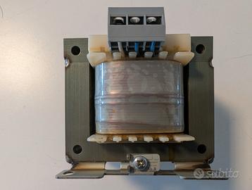 Trasformatore pari al nuovo con le seguenti caratteristiche: Primario 0-230V-400V secondario 24V potenza 200VA.