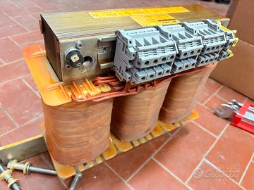 Potenza: 4000 VA. Tensione Primaria: 400V (con ingresso N per neutro). Tensioni Secondarie: Una uscita a 31V (1,8A o 1,9A) e una uscita a 200V (11,2A). Frequenza: 50-60Hz. Isolamento: Classe T40/B secondo la norma EN 61558-2-4.
