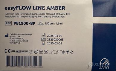Tubo di prolunga sterile monouso per pompa per infusione - PVC ambrato 150 cm, protezione UV per medicinali fotosensibili, raccordi Luer-Lock - 50 pezzi