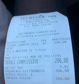 Vendo tutore gomito telescopico braccio SINISTRO regolabile marca E-Motion. Come nuovo usato solo 4 settimane per rottura tendine. Colore nero. Unisex.