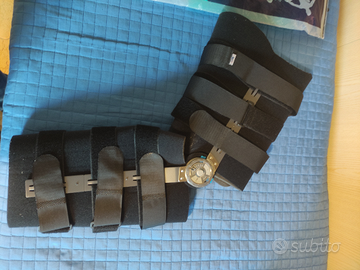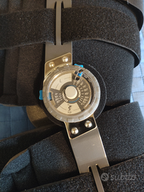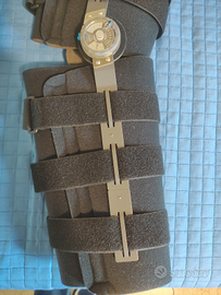 Vendo tutore utilizzato una sola volta, lavato e igienizzato, utile come sostituto del gesso per rotture delle ossa delle gambe. La taglia è la L (versione lunga). La rondella centrale serve per bloccare il tutore, quindi l'angolo di apertura della gamba, all'angolazione consigliata dai medici in modo tale da riniziare a camminare più gradualmente rispetto al gesso.