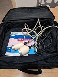 Apparecchio ultrasuoni in foto completo di manuale x utilizzo mirato al bisogno attraverso programma con frequenze munito di borsa alimentatore e manopole pagato 10 volte di piu del prezzo cui lo cedo in quanto resterebbe inutilizzato...usato poco e niente come si puo vedere dalla pellicola frontale ancora presente...