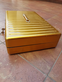 Vendo valigetta porta valori in lega di acciaio colore oro con doppia chiave, le misure le vedete nella quarta foto in allegato.