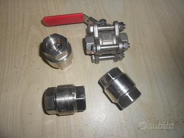 2 valvole a sfera in acciaio inox da 1"(dn 25 pn 63) 1 valvola a sfera in acciaio inox da 1/2 (dn 15 pn63 1 valvola in acciaio inox da 1/2 (dn 15) 3 valvole di non ritorno in acciaio inox di cui 2 da 1/2 e 1 da 3/4