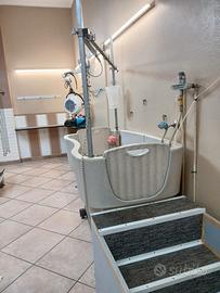 Completamente attrezzato: tavolo elettrico, vasca professionale, soffiatore, phon, attrezzatura varia inclusa.