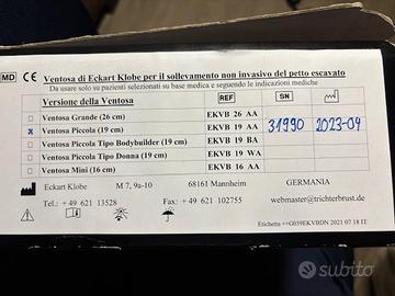 Ventosa di Eckart Klobe per il sollevamento non invasivo del petto escavato. VENTOSA PICCOLA 19 CM. - OTTIMO STATO Da usare solo su pazienti selezionati su base medica e seguendo le indicazioni mediche. Vendesi per inutilizzo.