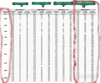 Vendo venturimentro della Irritec usato praticamente nulla. E' stato acquistato, ma non ha mai lavorato perchè il mio motore non era in grado di farlo funzionare correttamente. Serve un motore che a monte eroghi almeno 5 bar di pressione. Non fate il mio stesso errore. Vi allego una tabella delle pressioni per farvi un'idea. Vendo cosi come in foto: