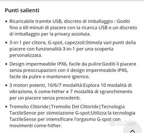 VIBRATORE 3 IN 1 PER DONNE CHE AMANO DIVERSIFICARE LA PROPRIA SESSUALITÀ, STIMOLATORE DEL PUNTO G E DEL CAPEZZOLO. ASTENERSI CURIOSI O PERDITEMPO. ARTICOLO NUOVO.