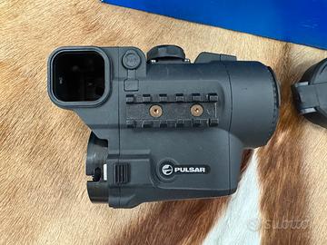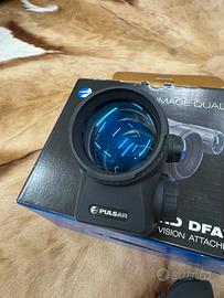 PULSAR VISORE NOTTURNO CLIP-ON FRONTALE DFA75 DIGITAL NIGHT 56MM Trasforma qualsiasi ottica Ddi puntamento in un visore notturno mantenendo la taratura. Si fissa al cannocchiale con ghiere adattatore in ALLUMINIO Caratteristiche: Ingrandimento: 1x, Obiettivo: 50mm Risoluzione: 500x582 pixel Tipo di schermo: OLED Risoluzione dello schermo: 640x480 pixel VGA Tipo di illuminatore: laser Distanza massima di rilevamento (da un oggetto con dimensioni di 1,7x0,5 m): 400 m Batterie: 4xAA Temperatura di funzionamento: da - 25ºC a + 50ºC Dimensioni: 155x82x117 mm Peso (senza batterie): 0,56 kg Si adatta a qualsiasi ottica grazie alle ghiere di differente diametro. Trasforma qualsiasi ottica in un'ottica a visione notturna senza nessuna regolazione aggiuntiva e permette di vedere qualsiasi cosa anche nella più totale oscurità.