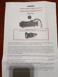 Bellissimo visore termico pergam lynx 3.0 mod lh 25,ideale per uso caccia,softair, sorveglianza in genere, visualizza perfettamente fonti termiche quali persone e animali a oltre 800 metri di distanza, prodotto professionale e non hobbistico, vendo insieme a un powerbanck da 10000 milliampere e robusta valigetta antiurto, acquistato a marzo 2021 e tenuto perfettamente