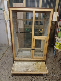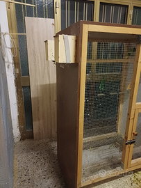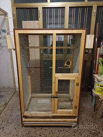 Vendo voliera fatta a mano con tre nidi e fondo estraibile per una pulizia piu facile..misure 150x90x70..vendo insieme coppia di cocorita con piccoli incluso nel prezzo di euro 50