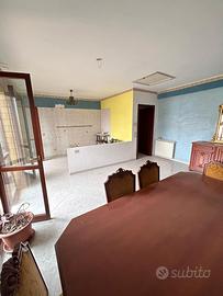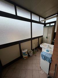 ingresso su grande soggiorno con cucina a vista, due camere da letto, ripostiglio, bagno con box doccia e lavanderia esterna verandata.