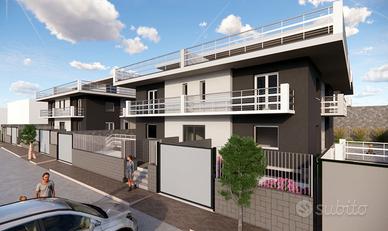 Giarre (Trepunti), adiacente svincolo autostradale A/18 e Strada Statale 114, in zona strategica e residenziale, l'Agenzia Metroquadro Immobiliare di Catania, propone in vendita appartamenti su due livelli di nuova costruzione vani 4, posti al primo piano più locale tecnico e terrazzo, all'interno di un residence formato da sole quattro unità abitative.