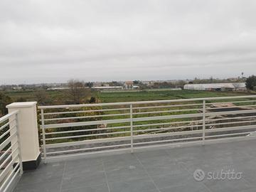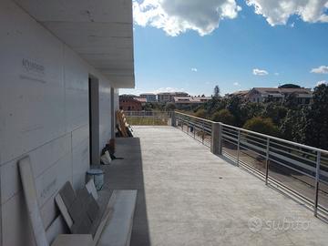 primo livello: Ingresso su zona living cucina/soggiorno, due camere da letto, una cameretta (studio), servizio con box doccia, da una scala interna si accede al piano superiore che presenta un comodo vano mq 42, secondo servizio/lavanderia, con affaccio su un ampio terrazzo mq 90 panoramico vista Etna e mare.