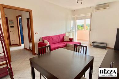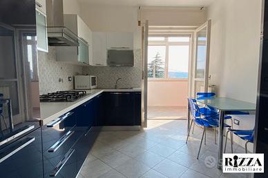L'alloggio si compone di: un comodo ingresso con armadiature a muro, cucina abitabile e soggiorno affacciati sulla veranda con vista mare, 2 camere da letto, bagno e posto auto coperto.