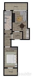 L'immobile è composto da un ampio ingresso che dà accesso a un soggiorno con angolo cottura, creando un ambiente spazioso e conviviale. Un disimpegno separa la zona giorno dalla zona notte, dove si trova una comoda camera da letto matrimoniale. Il bagno, finestrato, offre un'ulteriore sensazione di ampiezza e luminosità.