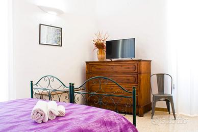 La camera è ubicata in palazzotto dei primi del novecento. Ha 4 posti letto, bagno in camera, clima, terrazzo, completo di lavanderia, lavatrice, spazi comuni. Biancheria, asciugamani e colazione a richiesta.