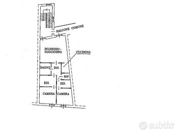 L'alloggio gode di una doppia esposizione, che garantisce luce naturale per tutto l'arco della giornata. La soluzione è composta da ingresso living su zona giorno con cucinino, un disimpegno che conduce al bagno, un comodo ripostiglio, e un ulteriore disimpegno che conduce alla zona notte composta da due camere da letto.