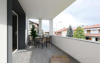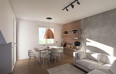 In palazzina di quattro famiglie di nuova realizzazione in classe energetica A4, proponiamo in vendita un trilocale di 107mq disposto su due livelli oltre 37mq di terrazzi e posto auto coperto di 16mq.