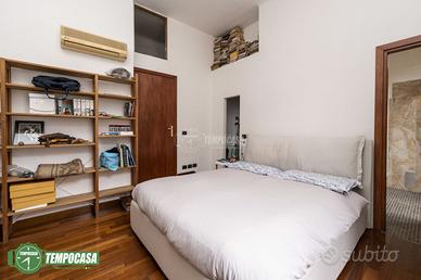 Un comodo disimpegno ci accompagna alla zona notte, dove troviamo due spaziose camere da letto, ognuna con caratteristiche che le rendono uniche. La camera matrimoniale, una vera e propria suite, è dotata di un balcone che affaccia sul silenzioso cortile interno, regalando momenti di pace e relax. A completare questa stanza, una cabina armadio ben organizzata e un ampio bagno en suite, rivestito di mosaico, che aggiunge un tocco di eleganza e funzionalità all'ambiente. La seconda camera da letto, altrettanto spaziosa, è dotata di un pratico soppalco che offre ulteriore spazio da sfruttare per ripostiglio o studio. Un secondo bagno, curato nei dettagli, e una zona lavanderia completano l'appartamento, aumentando la funzionalità della casa.